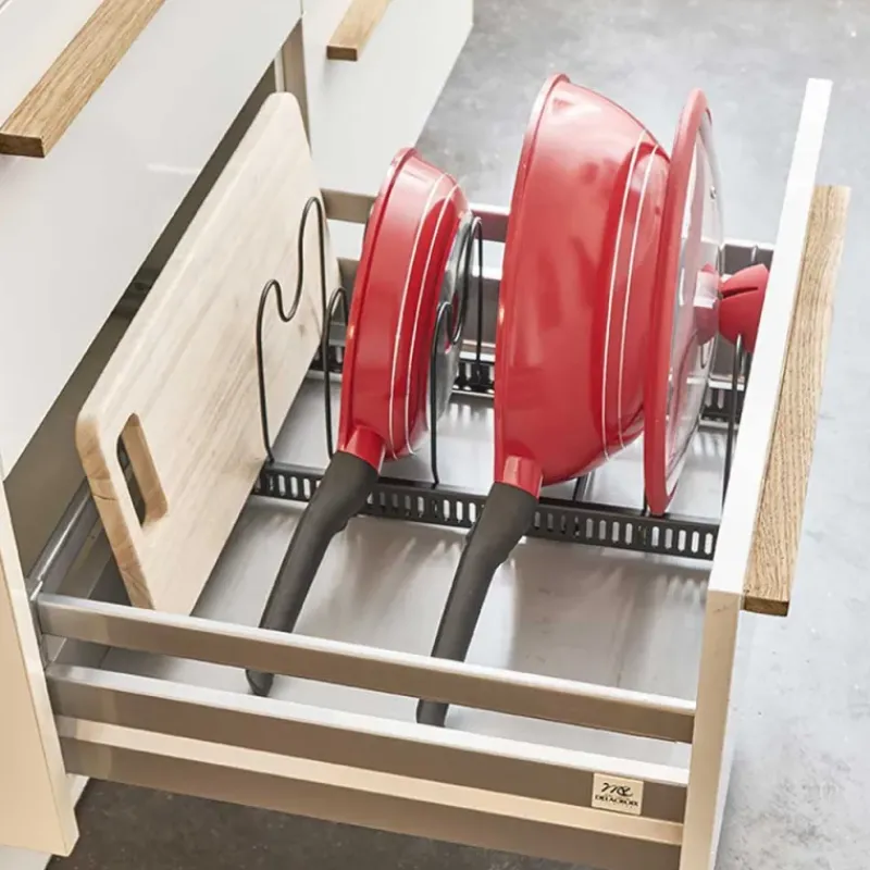 Simplifiez l’organisation de votre cuisine avec notre range-poêle et couvercles.
