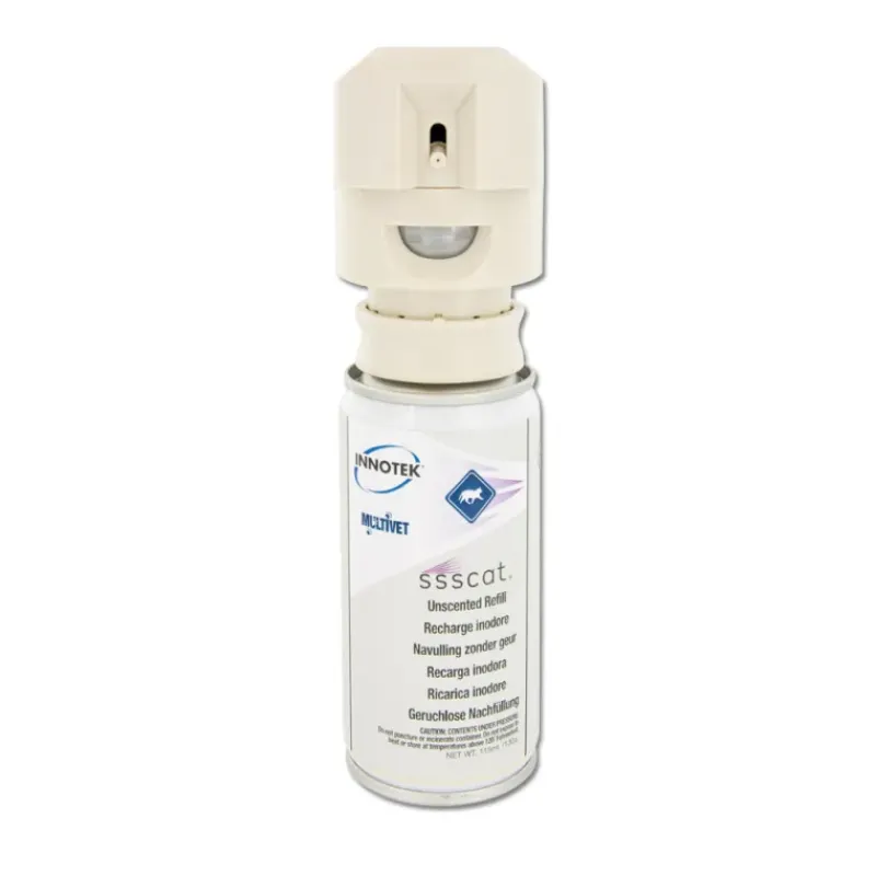 - Détection Avancée : équipé d’un capteur infrarouge passif, le spray détecte la chaleur corporelle de votre animal jusqu’à 90 cm de distance.