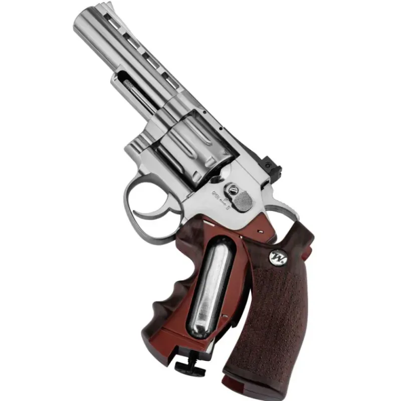 - Revolver à CO2 calibre 4,5 mm tirant des diabolos. Fonctionne en simple ou double action.
