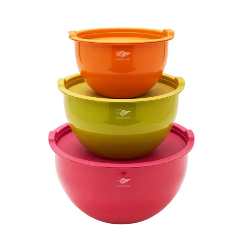 Saladiers acier inoxydable Pradel France multicolores avec couvercles x3