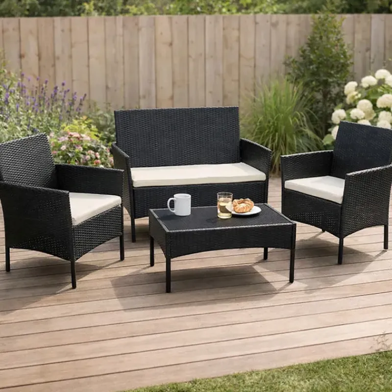 Un salon de jardin complet et moderne. Parfait pour un balcon, une terrasse ou un jardin, ce salon de jardin en résine tressée noire vous permet de créer un coin lounge stylé où il fait bon se retrouver.
