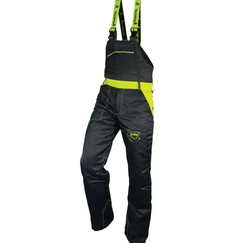 Cette salopette répond à la norme EN ISO 11393-2 Type A Classe 1 (20 m/s) : une salopette forestière anti-coupure destinée aux utilisateurs de tronçonneuse tenue à la main, offrant uniquement une protection à l’avant des jambes et efficace jusqu’à une vitesse de chaîne de 20 m/s.