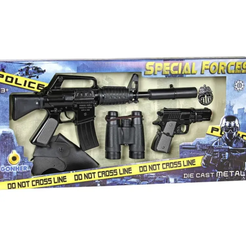 Set police enfant 5 accessoires mitraillette pistolet jumelles