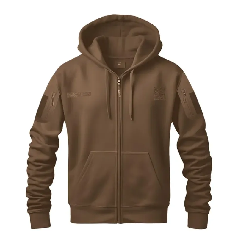 Ce sweat à manches longues et col rond est doté d’une fermeture zippée intégrale pour un enfilage facile et un ajustement personnalisable. Il arbore une capuche pratique pour se protéger des intempéries, ainsi que des détails tactiques avec 2 poches frontales et 2 poches zippées sur les bras, parfaites pour ranger vos essentiels en toute sécurité.