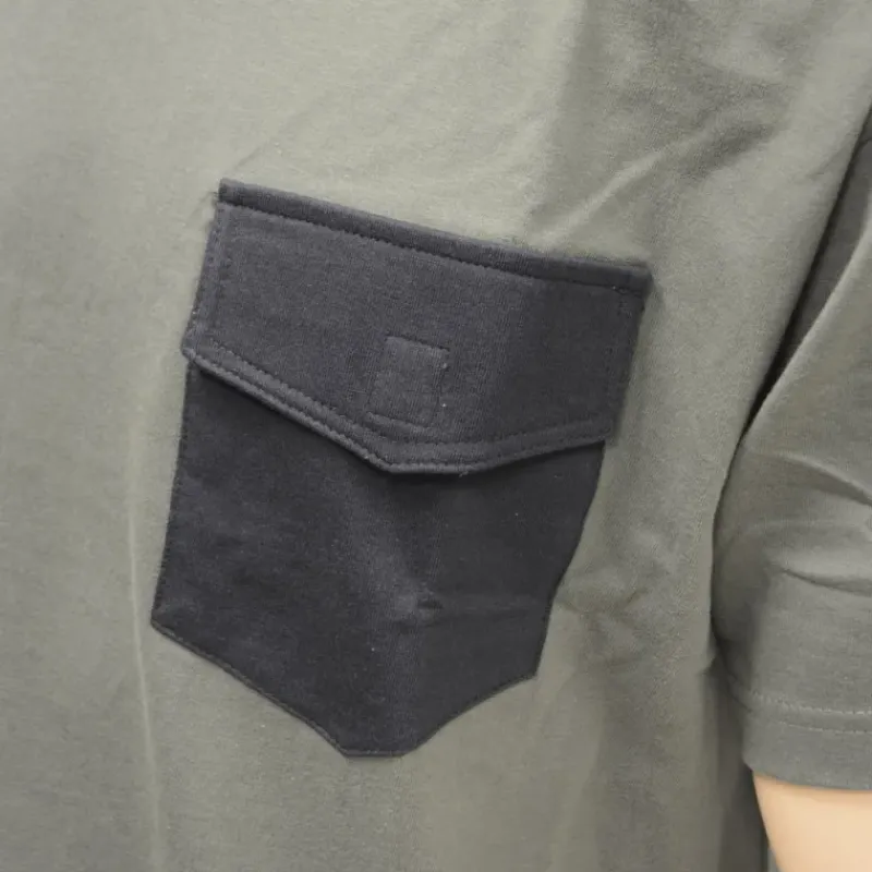 - Renforcé aux épaules, ce t-shirt de travail bicolore gris et marine dispose d’une poche de poitrine à scratch.