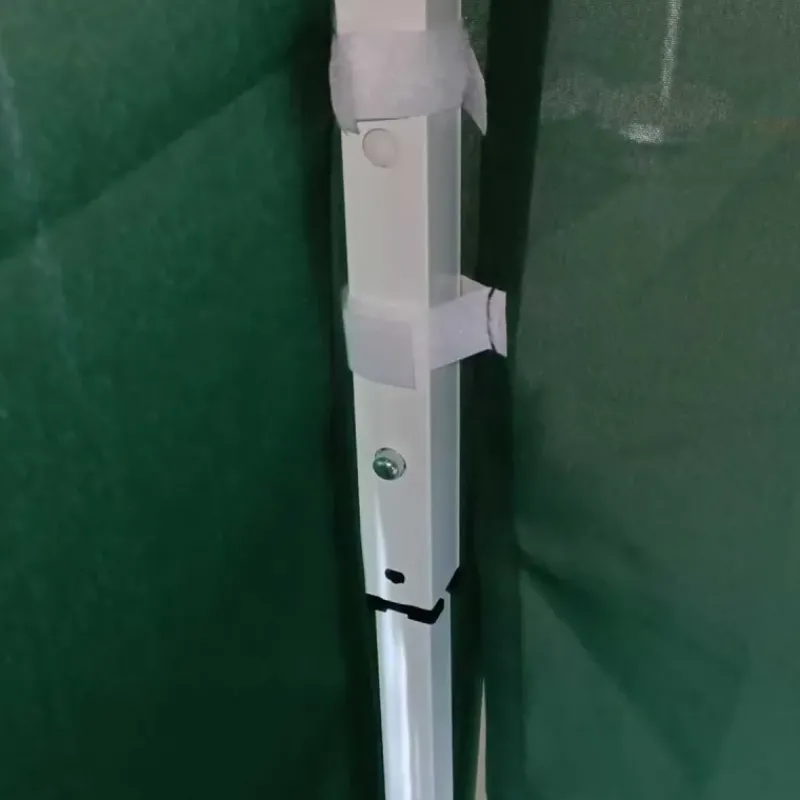 La tonnelle se plie et se déplie rapidement pour un rangement et un transport aisés. Pour une stabilité renforcée, elle est équipée de pieds extérieurs (25 x 25 x 0,5 mm), intérieurs (20 x 20 x 0,5 mm) et transversaux (9,5 x 18 x 0,45 mm). Les 4 cordes et 8 piquets de sol fournis garantissent une fixation solide au sol, même par temps venteux.